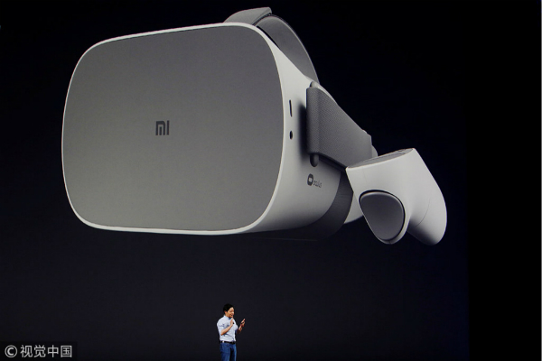 Xiaomi Founder Lei Jun introduces a new VR headset during a product launch in Shenzhen, May 31, 2018. [Photo/VCG] |