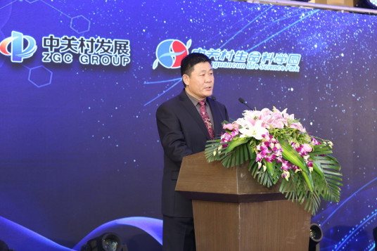 The managing director of Zhongguancun Life Science Park gives a speech. [Photo provided to chinadaily.com.cn] |