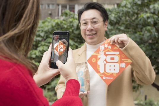 A user scans the Chinese character fu using the Alipay app to receive hongbao ahead of the Spring Festival. [Photo by CHEN JUN/FOR CHINA DAILY] |