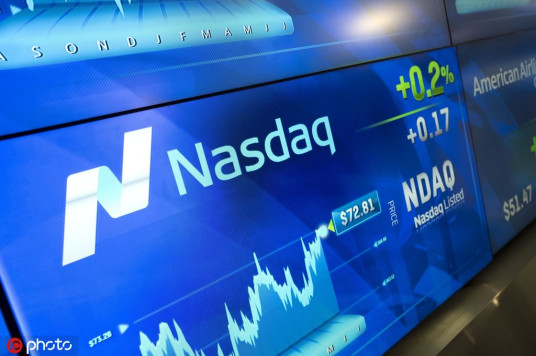 The Nasdaq stock value is shown on a screen at the Nasdaq MarketSite, July 25, 2017, in New York, the United States. [Photo/IC] |