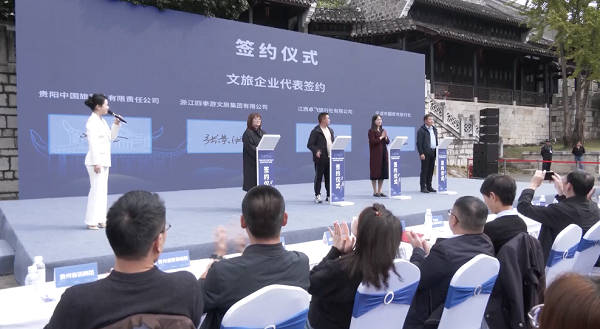 The "Yangming Sanwanli" culture and tourism industry cooperation initiative signing and promotion conference was held at Yangming Temple in Guiyang, capital of Southwest China's Guizhou province, on Nov 8.
