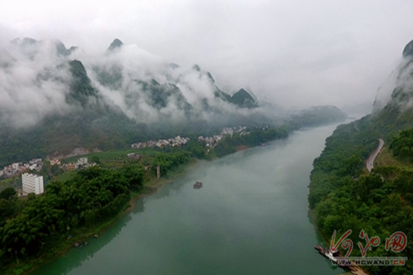 After the rain, the Hongshui River looked like a picturesque Chinese ink painting, a splendid sight amid the rain and fog.
