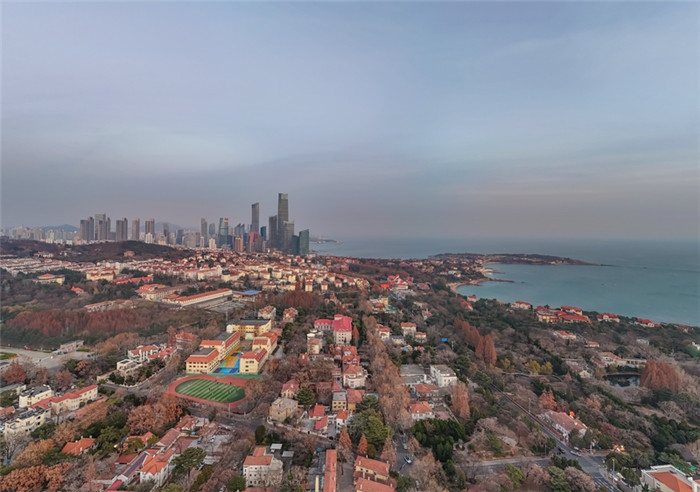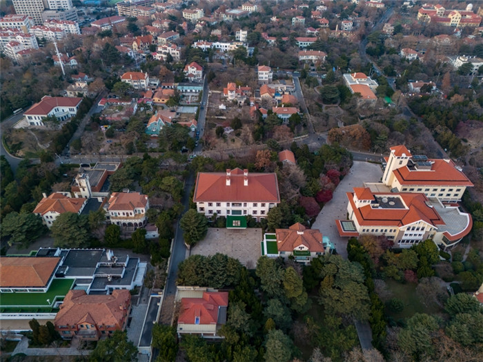 The aerial view reveals the quiet winter beauty of Qingdao's Badaguan area. [Photo/IC]