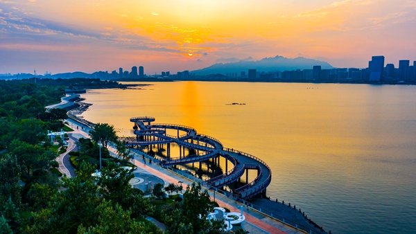 Tangdao Bay in the Qingdao West Coast New Area (Qingdao WCNA) has become a picturesque destination, particularly at dusk when the vibrant colors of the sunset cast a brilliant glow over the landscape.