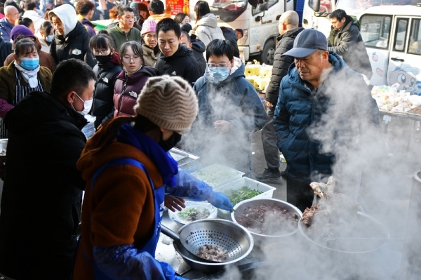 A snack stall is crowded with hungry shoppers. [Photo/IC]