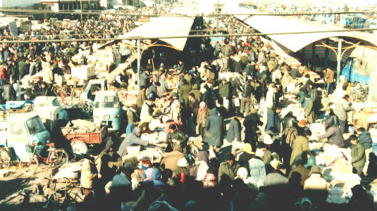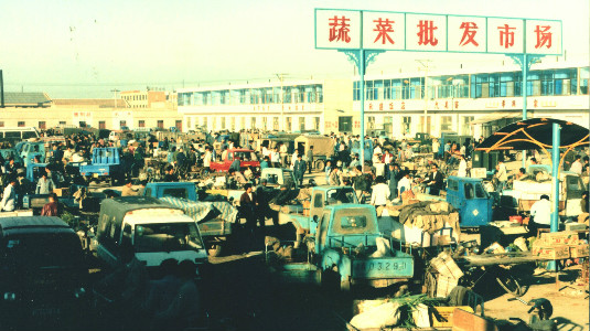 Lutai Wholesale Market for Vegetables is bustling with vendors and customers. Creator/Source: Ninghe District Cyberspace Administration