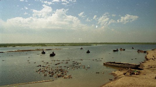 曾经的埋珠桥,虽然简陋,但也为当时的交通提供了极大的便利。河面上有一群白鹅正在游水。 作者/来源:宁河区委网信办