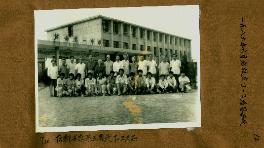 Ding Yisan returns to his old school - Lutai No 1 Primary School - and poses for a group photo at the gate (fifth from the right, back row). Creator/Source: Ninghe District Cyberspace Administration
