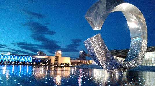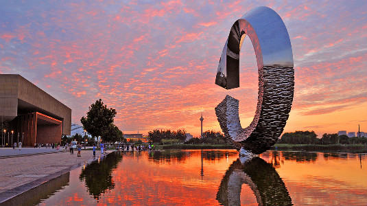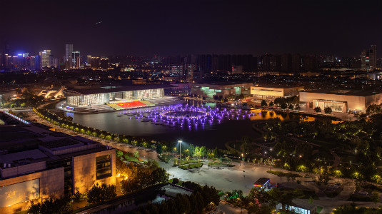 Tianjin Culture Center is a municipal administrative culture center in Hexi district, and includes Tianjin Natural Museum, Tianjin Library, Tianjin Museum, Tianjin Art Museum, Tianjin Grand Theatre, Tianjin Youth Activity Center and Tianjin Galaxy Mall. Creator/Source: Hexi District Cyberspace Administration