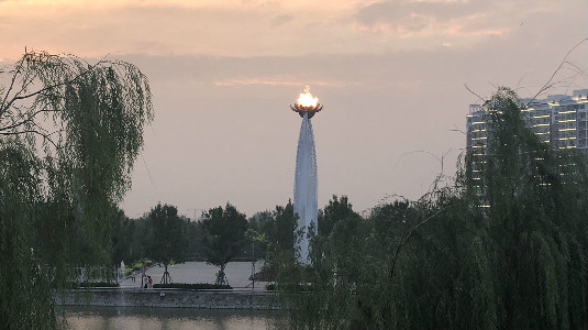 The tower, also called Tianta, was built in the center of Tianta Lake in southwest Tianjin in 1991. The high tower is a landmark piece of architecture in Tianjin and one of the top ten scenic sites in the city. Creator/Source: Hexi District Cyberspace Administration