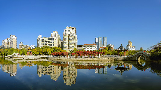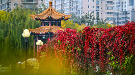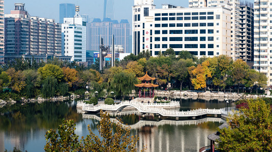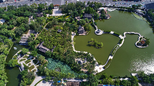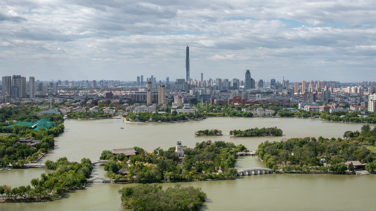 Tianjin Water Park, comprised of three lakes and five islands, has seven arch bridges and lots of Ming and Qing style buildings. It is known as the “West Lake in North China”. Creator/Source: Hexi District Cyberspace Administration