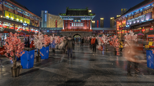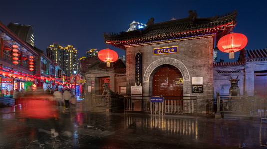 The Xiaobailou commercial area is the most bustling central business area in Tianjin. The name of “Xiaobailou” came from a two-story bar with a white outer wall, a symbolic building in the area. Creator/Source: Hexi District Cyberspace Administration