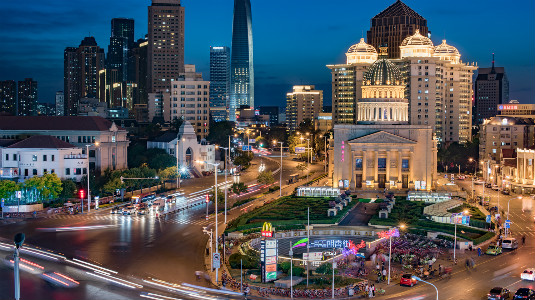 The Minyuan Square is located at Wudadao, a famous Tianjin scenic spot, and boasts a European-style buildings complex. Behind the square, there is a high building complex which marks the rapid growth of Tianjin. Creator/Source: Hexi District Cyberspace Administration