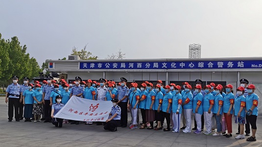 河西区越秀路街道银河文化社团联合会“红色氧吧”志愿巡逻队启动仪式在文化中心广场综合警务站举行。 作者/来源:辛红平