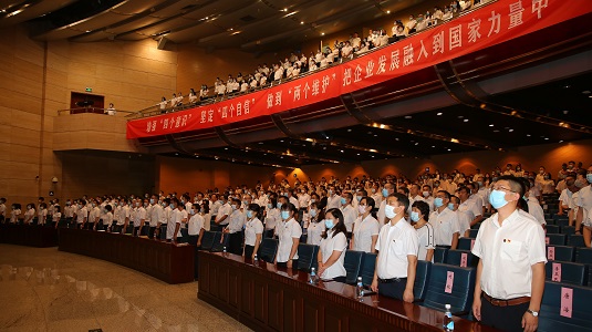 Tasly Holding Group holds a conference to celebrate the birthday of 99-year-old Communist Party of China and urges its employees to make concerted efforts for the social and economic development of the country. Creator/Source: Beichen District Cyberspace Administration