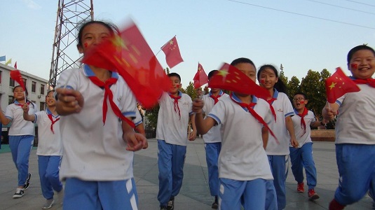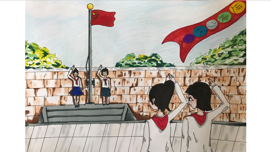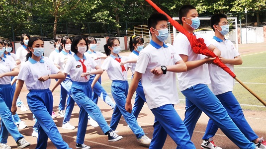 Flag-bearers, selected from the young pioneers, are on the march. Creator/Source: Tianjin Nankai District Education Bureau