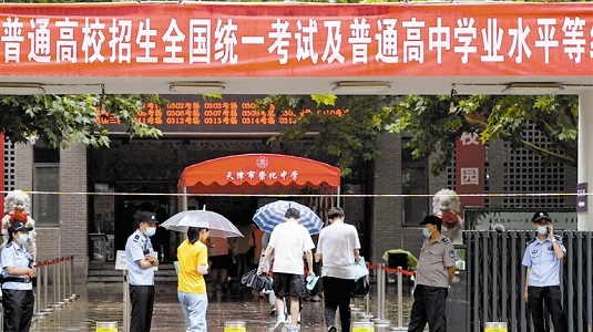 Tianjin welcomes first grade exam in rain