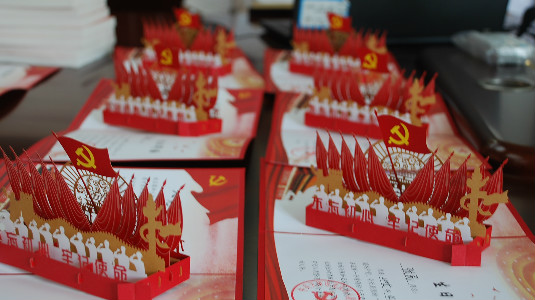 The discipline inspection committee and supervision committee of Tianjin's Beichen district organized a CPC themed activity to celebrate the "political birthday" of the Party members who joined the Party in June and July, and presented them with study books. Creator/Source: Beichen District Cyberspace Administration