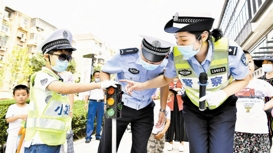 The launching ceremony of the "Red Oxygen Bar" volunteer patrol team consisting of the members of the Yinhe Cultural Association Union is held at the integrated police station of Yinhe Cultural Center Square. Creator/Source: Xin Hongping