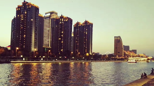 Haihe River at nightfall. Creator/Source: Chen Ying
