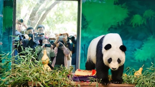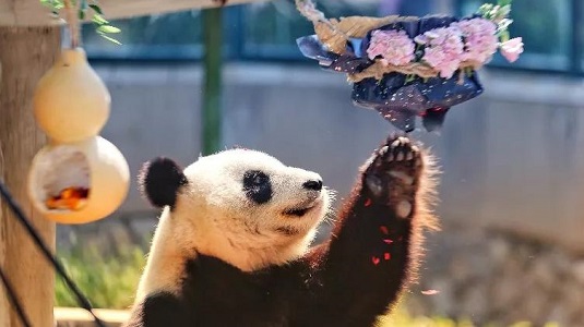 Giant panda "Xile" celebrates her seventh birthday in Tianjin
