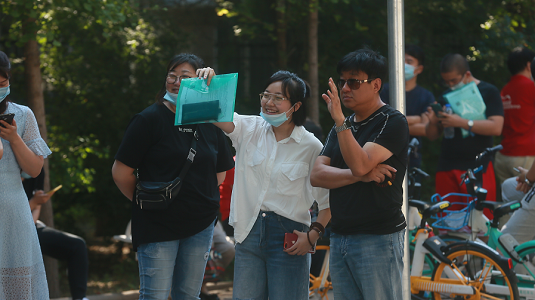 At the entrance of the exam site, many parents come together to see their children off for "the most important test" of their lives. Creator/Source: Jinyun WeChat Account