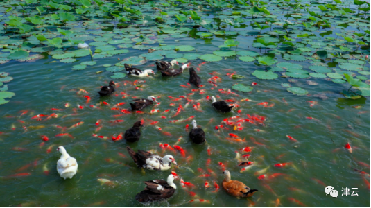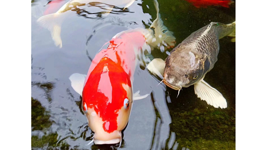 Koi fish swim in the lake at Tianjin University. In China's traditional culture and art, the fish and water are seen as symbols of prosperity and harvest. Creator/Source: Chen Ying