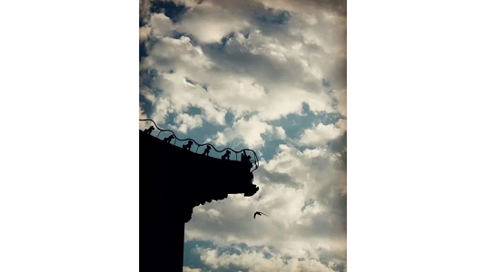 A homing bird flies among the archaic eaves at sunset. Creator/Source: Chen Ying