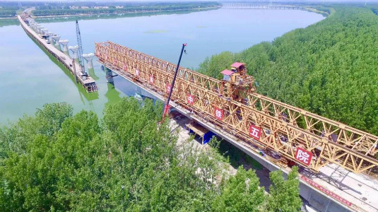 Workers make final preparations for the breach blocking at the construction site of the grand bridge crossing the Chaobai New River in Baodi District, a significant control node of the Beijing-Tangshan Inter-city Railway. Creator/Source: Jinyun WeChat Account