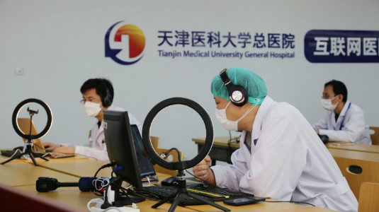 Doctors deal with online medical inquiries through a special clinic of the General Hospital of Tianjin Medical University.
