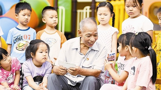 A retired worker tells her story to the participants during the activity. Heping district launches an ideological education activity for all age groups with the theme of "follow the command of the Party and strive for a new era". Creator/Source: Heping District Cyberspace Administration