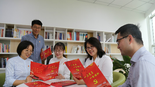 The discipline inspection committee and supervision committee of Tianjin's Hebei district organized a CPC themed activity to firm up the political convictions and political viewpoints of its employees on July 1, the 99th anniversary of the founding of the Communist Party of China. Creator/Source: Hebei District Cyberspace Administration