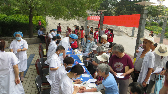 Huanghuanao community invites medics of Tiantie Hospital to provide free clinical treatment for its residents, involving internal medicine, surgery, gynecology and pediatrics. They also pay home visits to the retired Party members living in the community to conduct basic inspections for them. Creator/Source: Hedong District Cyberspace Administration
