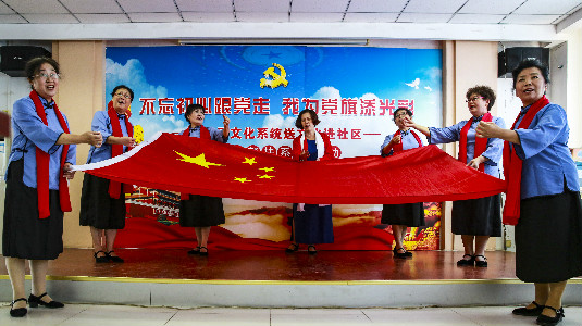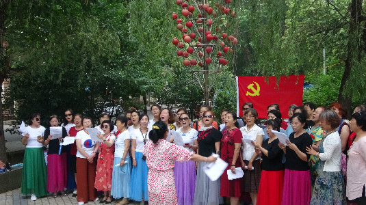 Participants sing "Ode to the Motherland" in high spirits. Many communities affiliated to Tiantie subdistrict jointly organized Party members to sing excellent songs in praise of the Party and our great country. Creator/Source: Wang Haijun