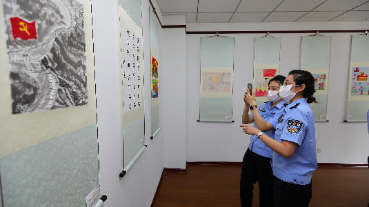 The Hebei Branch of the Public Security Bureau holds a calligraphy and painting exhibition themed as an "Ode to Loyalty". Creator/Source: Hebei District Cyberspace Administration