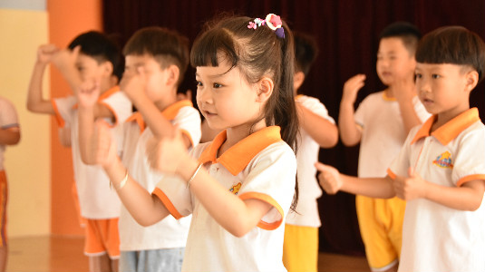 A kindergarten of Xinkou town in Xinqing district organizes children to sing revolutionary songs and perform finger dances to celebrate the 99th anniversary of the Communist Party of China. Creator/Source: Xiqing District Cyberspace Administration