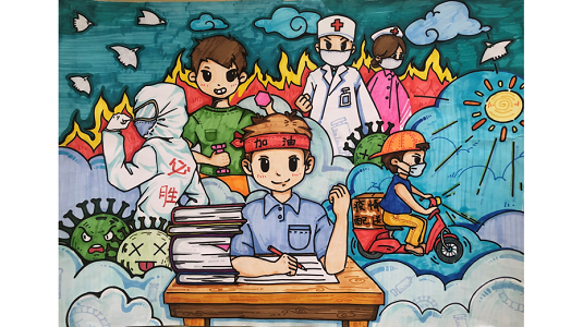 The end of June ushered in the second half of 2020, but the anti-epidemic fight is not over. The unprecedented defense against the virus impressed every child, and many recorded the scenes of the nationwide fight with their brushes. Creator/Source: Tianjin Nankai District Education Bureau