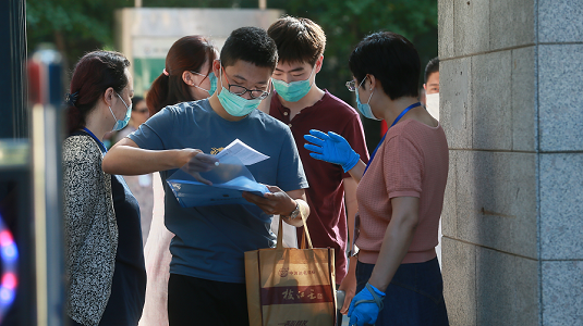 Just after 7.30 am on July 7, Tianjin No 2 Nankai Middle School welcomes the first students to take the exam. A total of 56,000 students citywide will go to more than 70 exam sites to take their "final exams". Creator/Source: Jinyun WeChat Account
