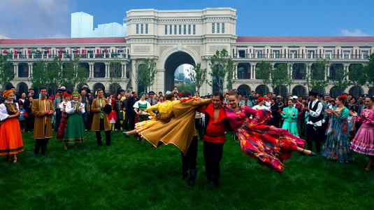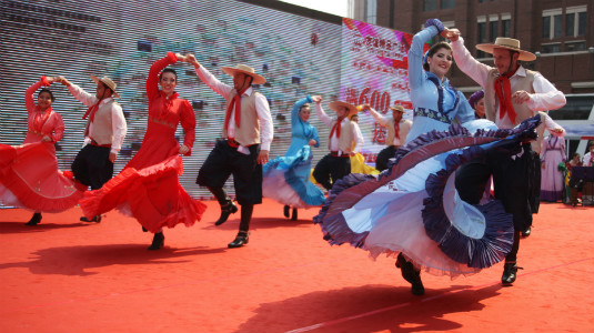 Foreigners perform their folk dances. Creator/Source: Heping District Cyberspace Administration