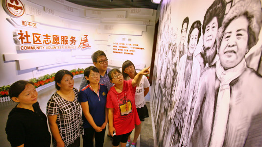 Heping Community Volunteer Service Exhibition Hall was completed in May, 2015. It is situated close to Chaoyangli Community at Xinjing Street, showcasing the overall volunteers' situation in the district. Creator/Source: Heping District Cyberspace Administration