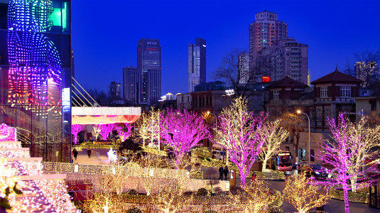 Trees and plants wither during autumn and winter. However, Minyuan Square is beautiful throughout the whole year. Creator/Source: Heping District Cyberspace Administration