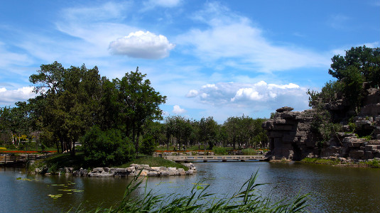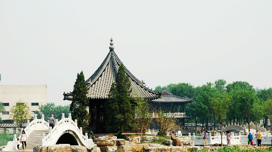 “辅以修廊,环以曲径,或架小桥,或覆茆亭,异卉文石,错杂其间,小山蜿蜒,一水沦涟,泛舟而嬉,则绿波荡漾,游鱼可数;登山而望,则栝柏交柯,空碧爽肌,洵城市之山林游观之胜地。” 作者/来源:河北区委网信办