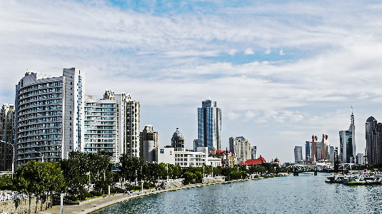 Yuanyang Building lies perfectly in tranquility and elegance. High yet graceful, it has 40 floors. Featuring a strong marine culture, it has become a sign of Tianjin as an international port city. Creator/Source: Hebei District Cyberspace Administration