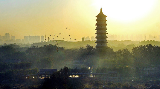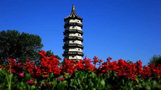The Zhiyuan Tower at the north of the Ningyuan Garden is more than 70 meters high, with 9 floors. On its walls are more than 100 stone carvings depicting ancient and modern Chinese culture. It is a good place to climb up and have a panoramic view. Creator/Source: Hebei District Cyberspace Administration