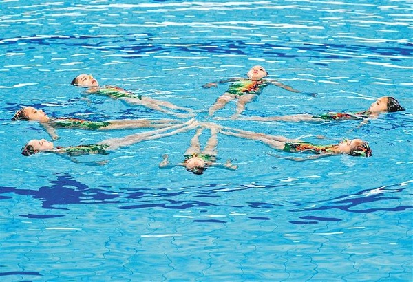 A trial competition for the synchronized swimming event of China's 14th National Games was held at the swimming and diving hall of Xi'an Olympic Sports Center on June 17.