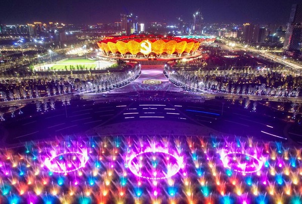 To celebrate the 100th anniversary of the Communist Party of China (CPC), a magnificent water show on the Bahe River and a colorful light show at the Xi'an Olympic Sports Center are held on June 24.