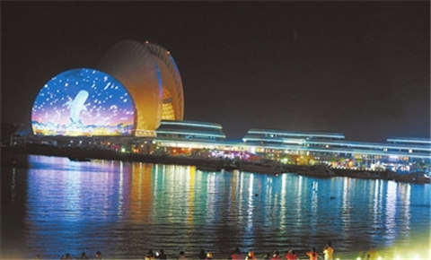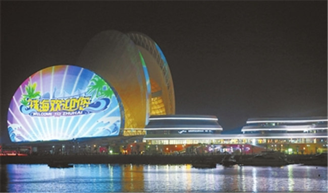 Ocean sceneries and event highlights were being projected on the Zhuhai Opera House's exterior walls, bringing the Dec 12 opening day of Guangdong International Tourism & Culture Festival to a climax.