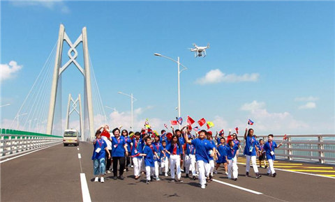 The Hong Kong-Zhuhai-Macao Bridge provided a backdrop for friendly cultural exchanges between Zhuhai students and youngsters from six foreign countries along the Belt & Road route from May 22 to 24.