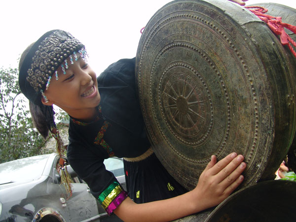 In 2006, the Zhuang People’s Copper Drum Practices were added to the national cultural heritage list by the State Council. In 2008, the Culture Ministry declared Donglan county and the city of Hechi the “Home of Chinese Copper Drum Art” and, in 2009, its “Copper Drum Practice” became a candidate for the Human Cultural Heritage, thanks to the Culture Ministry. There are now more than 2,400 copper drums in the world, at least 1,400 of them in Hechi, making it a Copper Drum Cultural and Ecological Reserve with recognition across Guangxi.