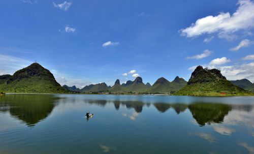 | The beautiful scenery of Chenglong Lake in Luocheng [Photo/Xinhua] |